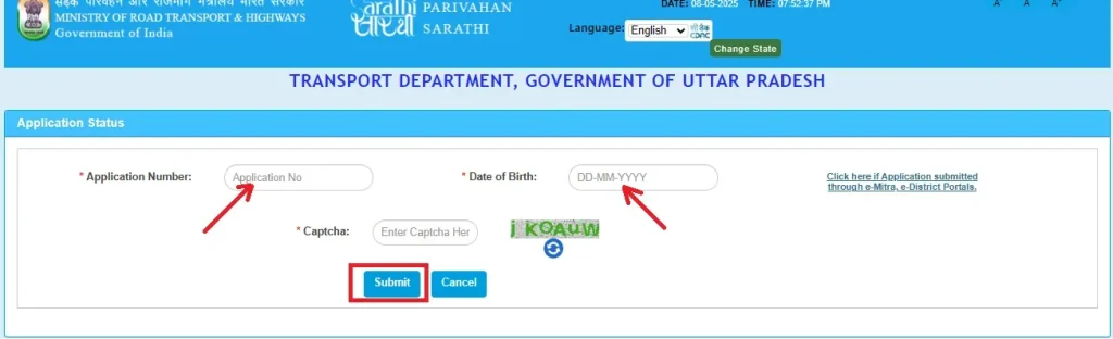 | Application Number | Given after submitting your DL application. Found on the receipt or SMS. |